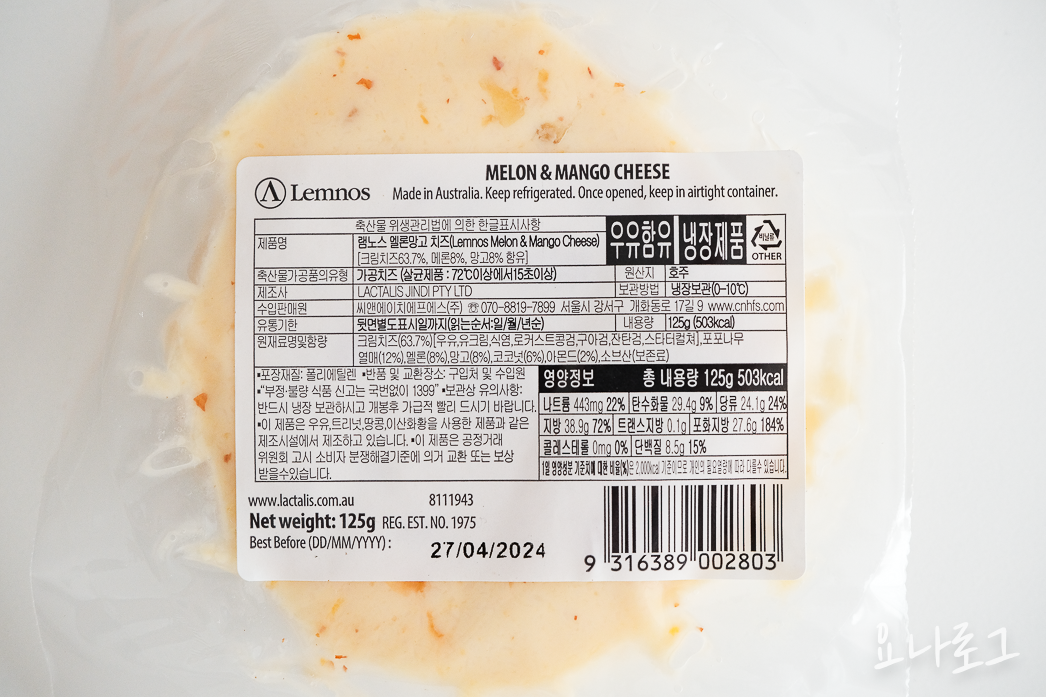 램노스에서 나오는 과일 치즈는 멜론&망고 맛 외에도 살구 아몬드, 블루베리, 과일 후르츠넛, 갈릭 차이브 등 종류가 아주 다양하다.