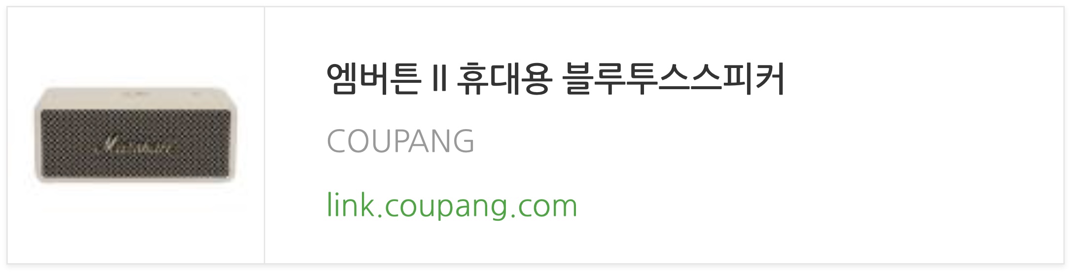 나는 마샬을 좋아한다. 마샬의 묵직한 베이스와 예쁜 디자인이 좋아서 꽤 오랫동안 마샬의 다양한 제품을 사용하고 있다. 스피커는 마샬 스탠모어와 킬번을 사용하고 있지만 둘 다 휴대용은 아니다. 스탠모어는 유선이니 그렇다 치고 킬번은 무선 스피커지만 꽤 크고 무겁다. 놀러 나갈 때 부담 없이 들고나갈 수 있고, 이방저방 옮겨 다니면서 쓸 수 있는 진짜 작고 가볍고 실용적인 포터블 스피커가 갖고 싶었다. 그래서 마샬 엠버튼을 구입했다.